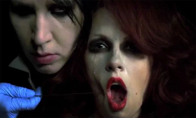 W innej scenie Marilyn Manson przebija długim szpikulcem policzek dziewczyny.