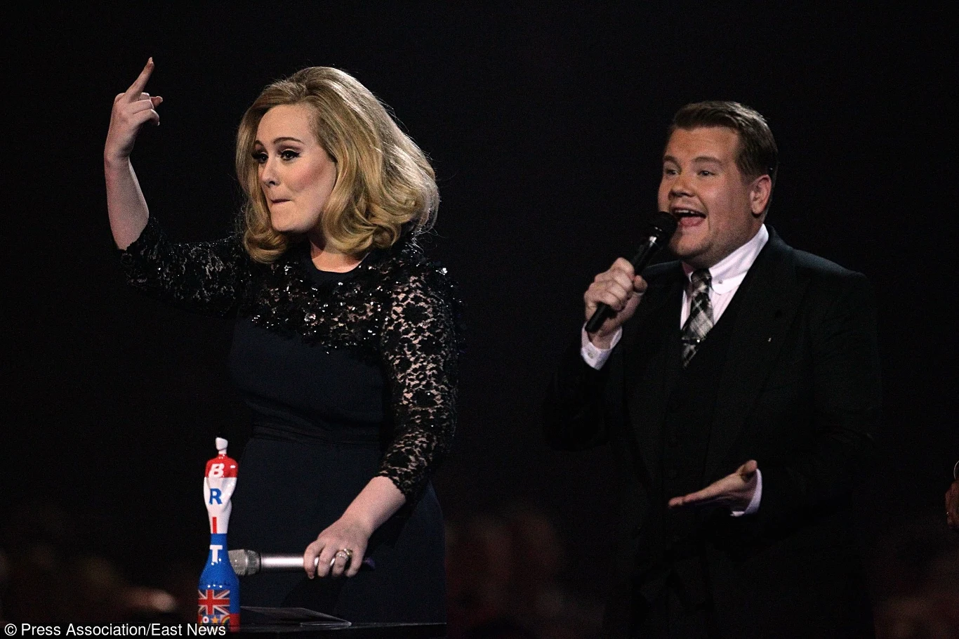 2012 rok. Adele podbija świat płytą "21". 12 lutego była największą zwyciężczynią ceremonii Grammy, gdzie zdobyła trzy nagrody w najważniejszych kategoriach - album roku, piosenka roku i nagranie roku. Nieco ponad tydzień później Adele zjawia się na gali Brit i wygrywa w kategoriach najlepsza brytyjska artystka i brytyjski album roku. Przemówienie z okazji zdobycia drugiej nagrody nie było jednak tak długie jak sobie życzyła Adele. Wokalistce przerwał James Corden i powiedział, że nie ma czasu na jej chwile triumfu z powodu napiętego grafiku ceremonii. Adele kończy więc wypowiedź w swoim stylu, pokazując w stronę publiczności środkowy palec. Oczywiście nie chciała jednak obrazić fanów, a dać do zrozumienia organizatorom, że tak się po prostu nie robi.