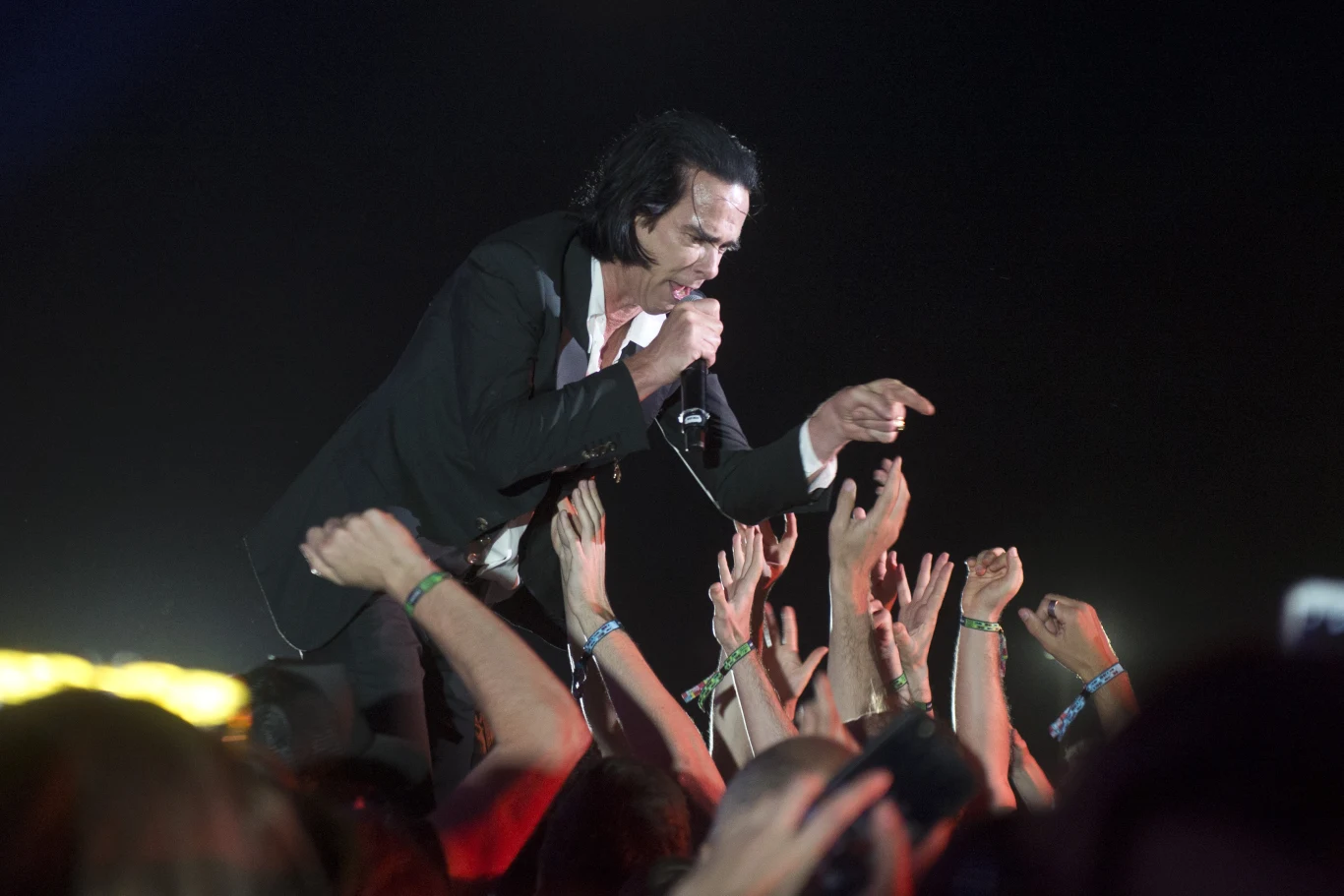 Ale! Wcale nie było tak, że wszyscy stali zasłuchani w nostalgiczne piosenki, a Cave wyrzucał z siebie depresyjne myśli. To doskonały, charyzmatyczny wokalista. Nie bardzo chciał trzymać się pianina czy statywu mikrofonu. Przez większą część koncertu biegał przy publiczności, od której nie odgradzały go barierki ani szereg ochroniarzy. To dla fanów z pewnością dodatkowy atut występu, bo nieczęsto można dotknąć ręki (czy tam nogi) Nicka Cave'a!