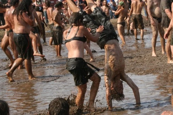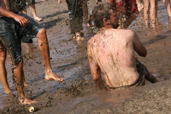 Zabawa w błocie na XV Przystanku Woodstock - Kostrzyn nad Odrą, 31 lipca - 2 sierpnia