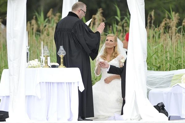 Mimo choroby czerwonowłosego wokalisty doszedł do skutku jego ślub w pięknych, mazurskich włościach. 30 czerwca 2012 r. Michał Wiśniewski i Dominika Tajner, w obecności luterańskiego duchownego, powiedzieli sobie "tak". Dla piosenkarza był to już czwarty ślub, dla jego ukochanej - drugi. Fot. Michał Baranowski