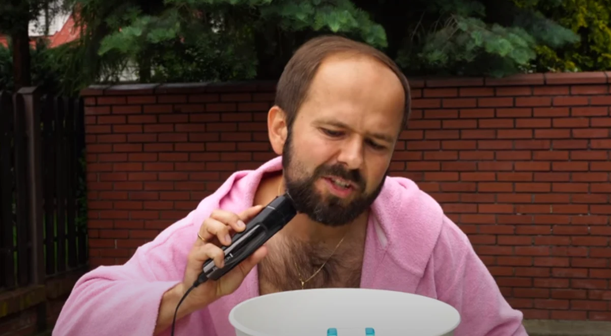 "Jak jest premiera, to się trzeba porządnie wyszykować" - mówi wokalista w opublikowanym zwiastunie teledysku, pokazując, jak goli swoją brodę.
