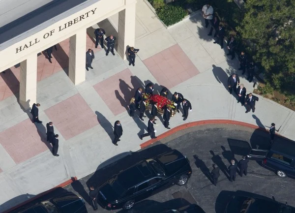 W hali Staples Center w Los Angeles członkowie rodziny Michaela Jacksona, jego przyjaciele oraz fani spotkali się, by publicznie pożegnać "króla popu". W honorowym miejscu przed sceną wystawiono trumnę z ciałem Michaela.