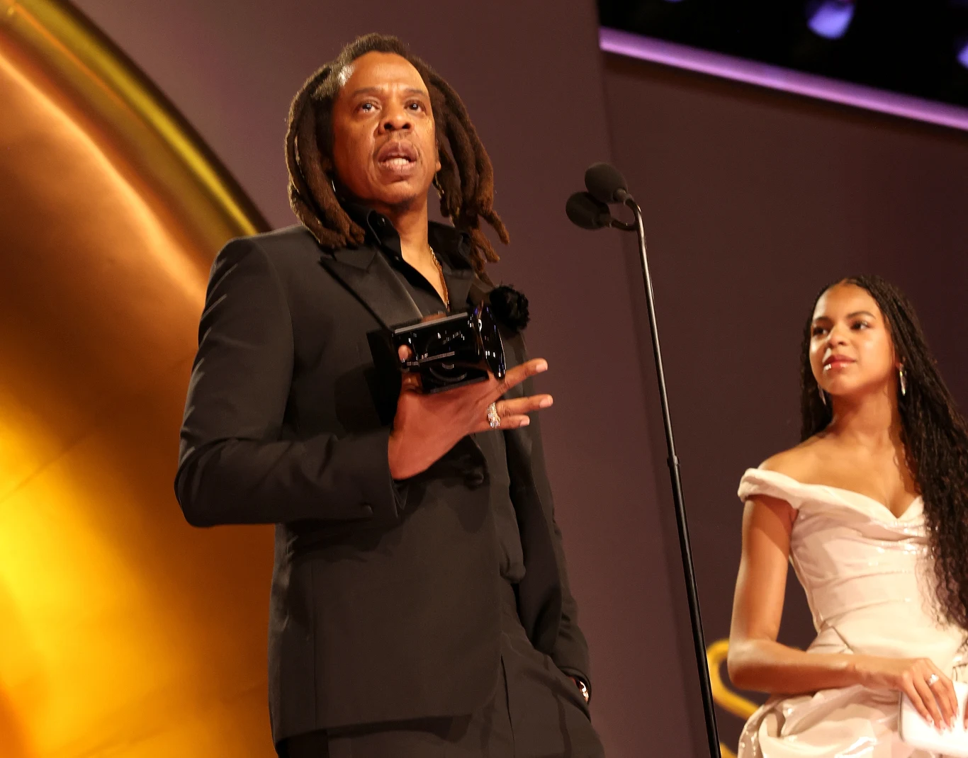 Ten ostatni pojawił się na gali z Beyonce oraz córką Blue Ivy, z którą też wszedł na scenę. Raper skorzystał ze swojego czasu na przemowę, aby bronić swojej żony, a przede wszystkim uderzyć w członków Akademii, którzy decydują o przyznawaniu nagród.